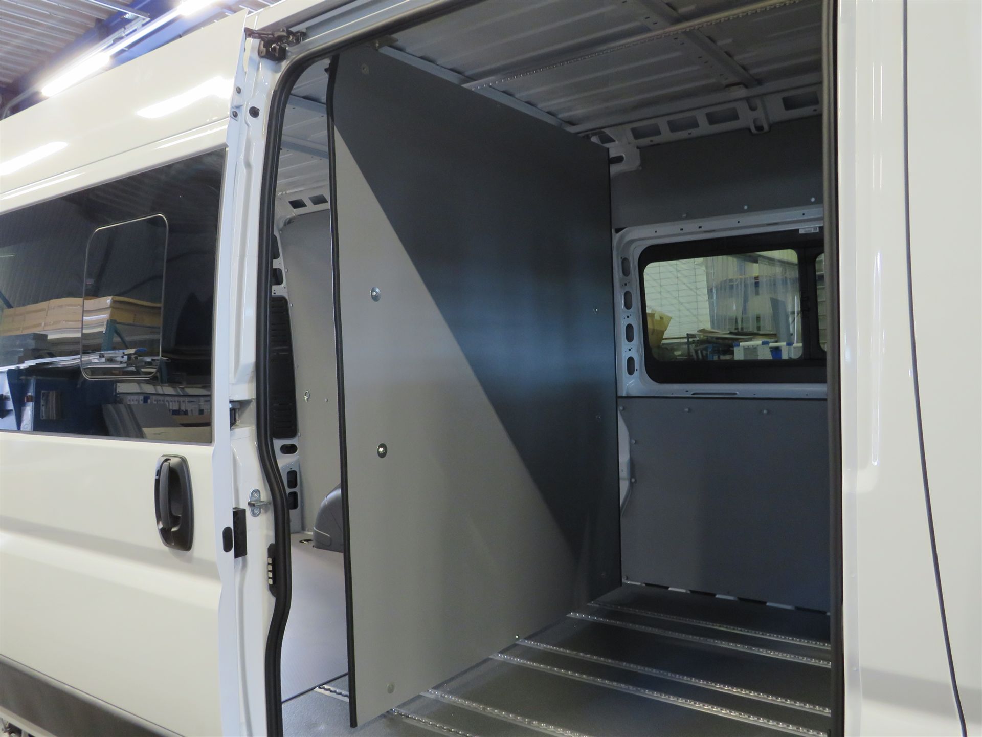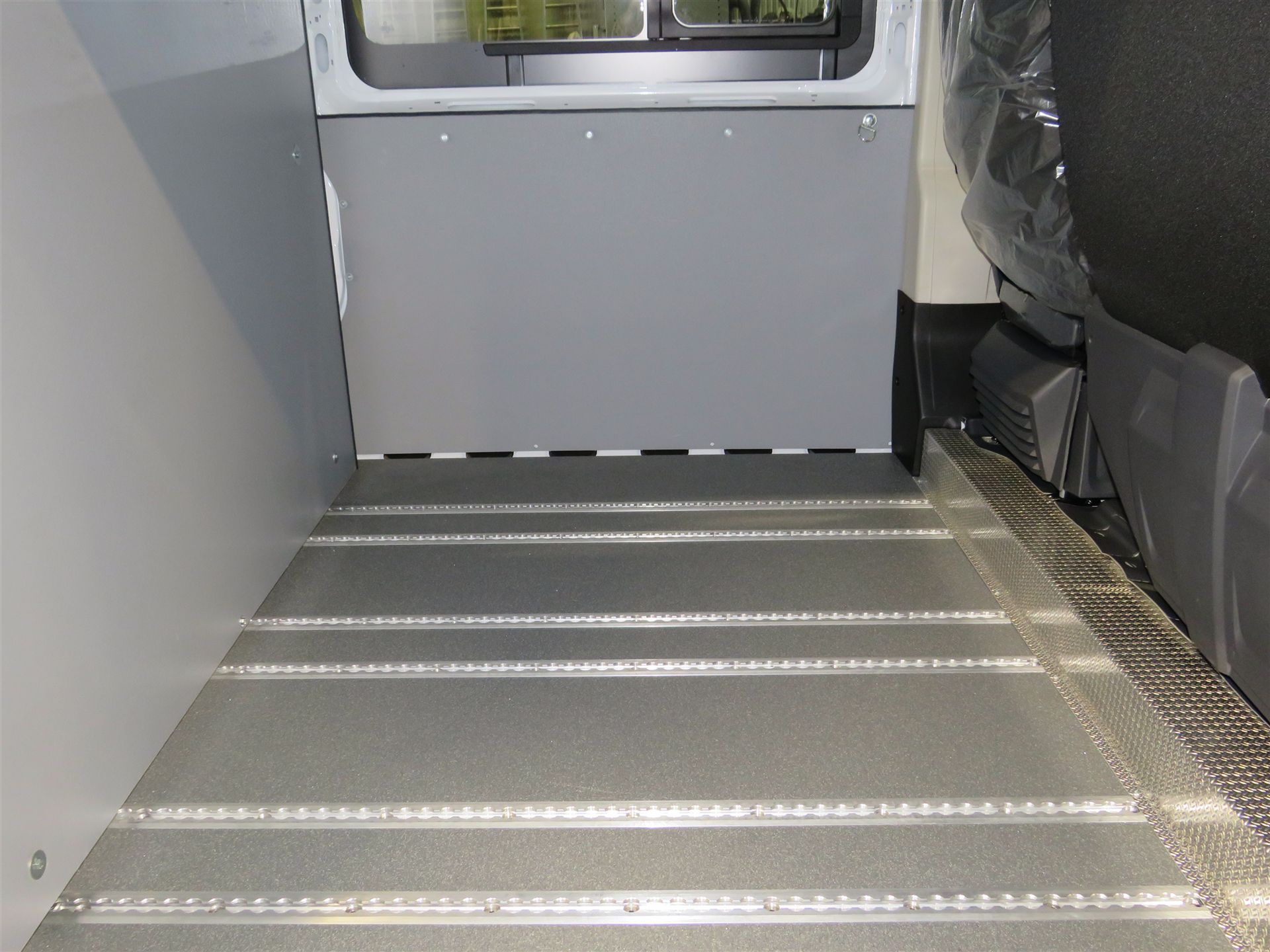 In neuen Fahrzeugen (ab Oktober 2006) muss der Insassenraum v. Laderaum in gesamter Breite u. Höhe durch eine Rückhalteeinrichtung, z.B. eine Trennwand oder Trenngitter abgegrenzt sein. |